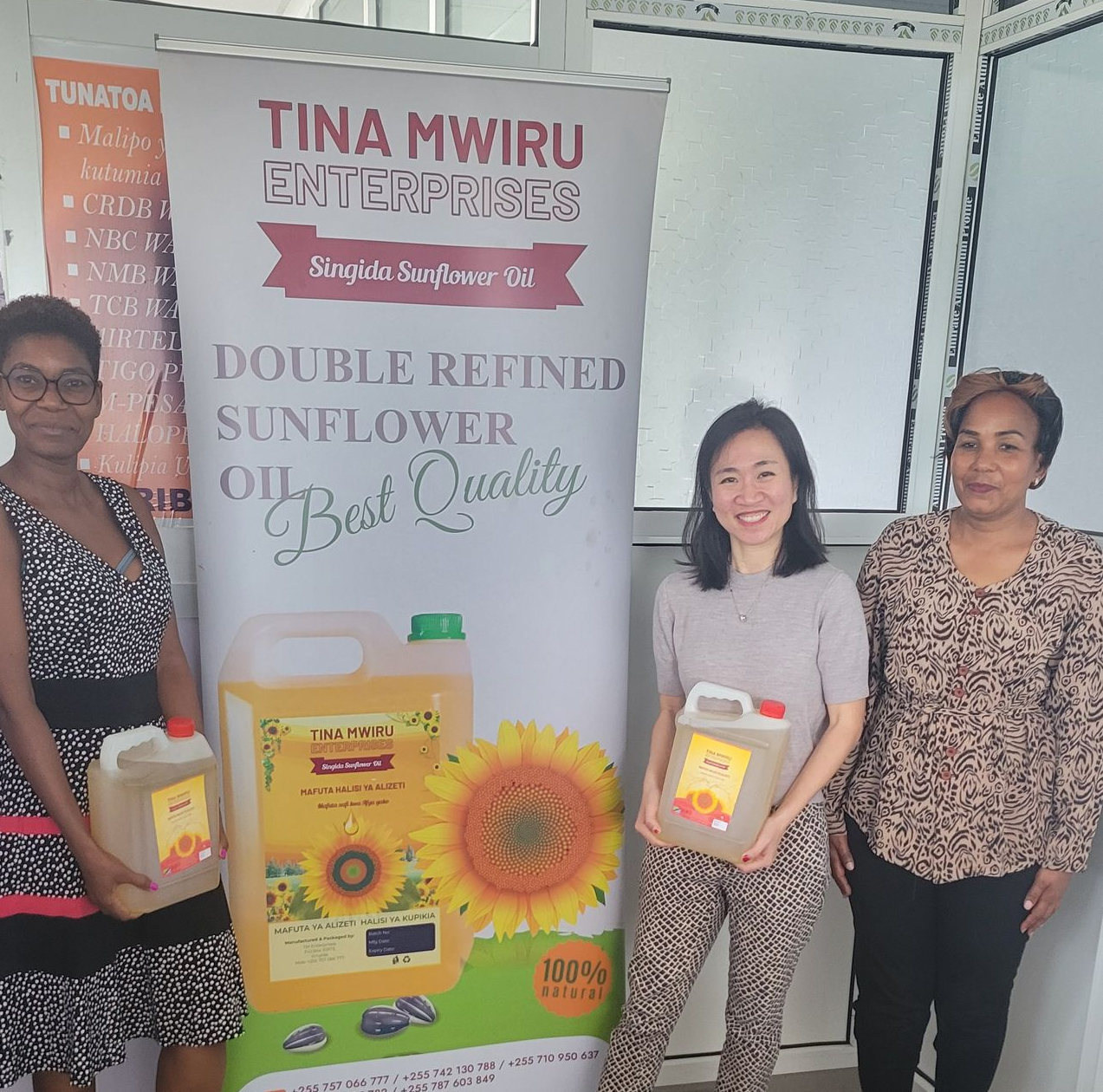 Tina, the founder and CEO of Tina Mwiru Enterprises, comes from a large family with 14 siblings. She operates her sunflower oil business in a region with a very short harvest season, just a few months each year. Processing takes place in a shared facility, and access to equipment and capital is limited. Growth, in this context, isn’t about rapid scaling or quick wins.